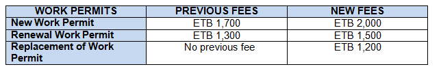 Ethiopian immigration authorities have published the revised fee schedule for immigration services, effective immediately. Immigration service fees have not been increased in years.