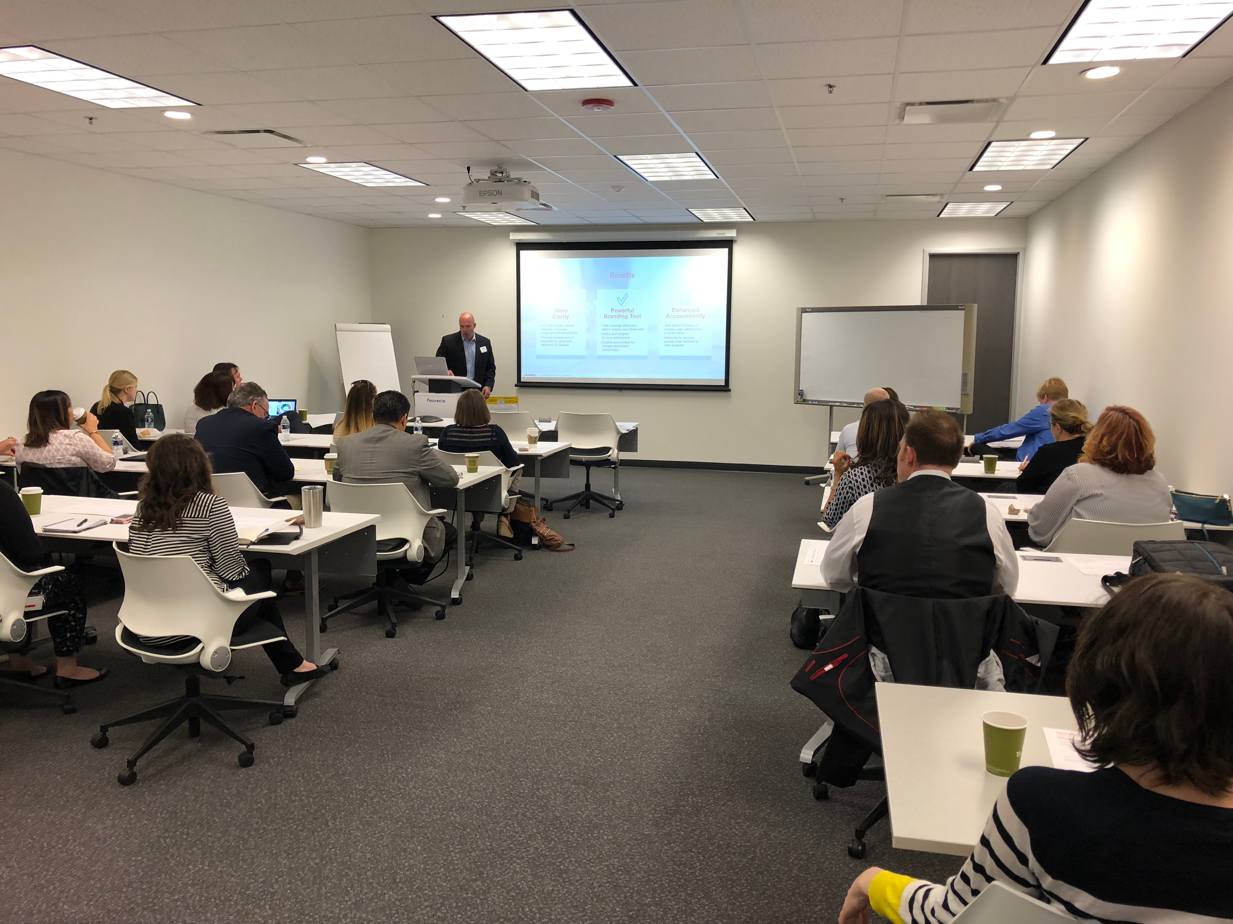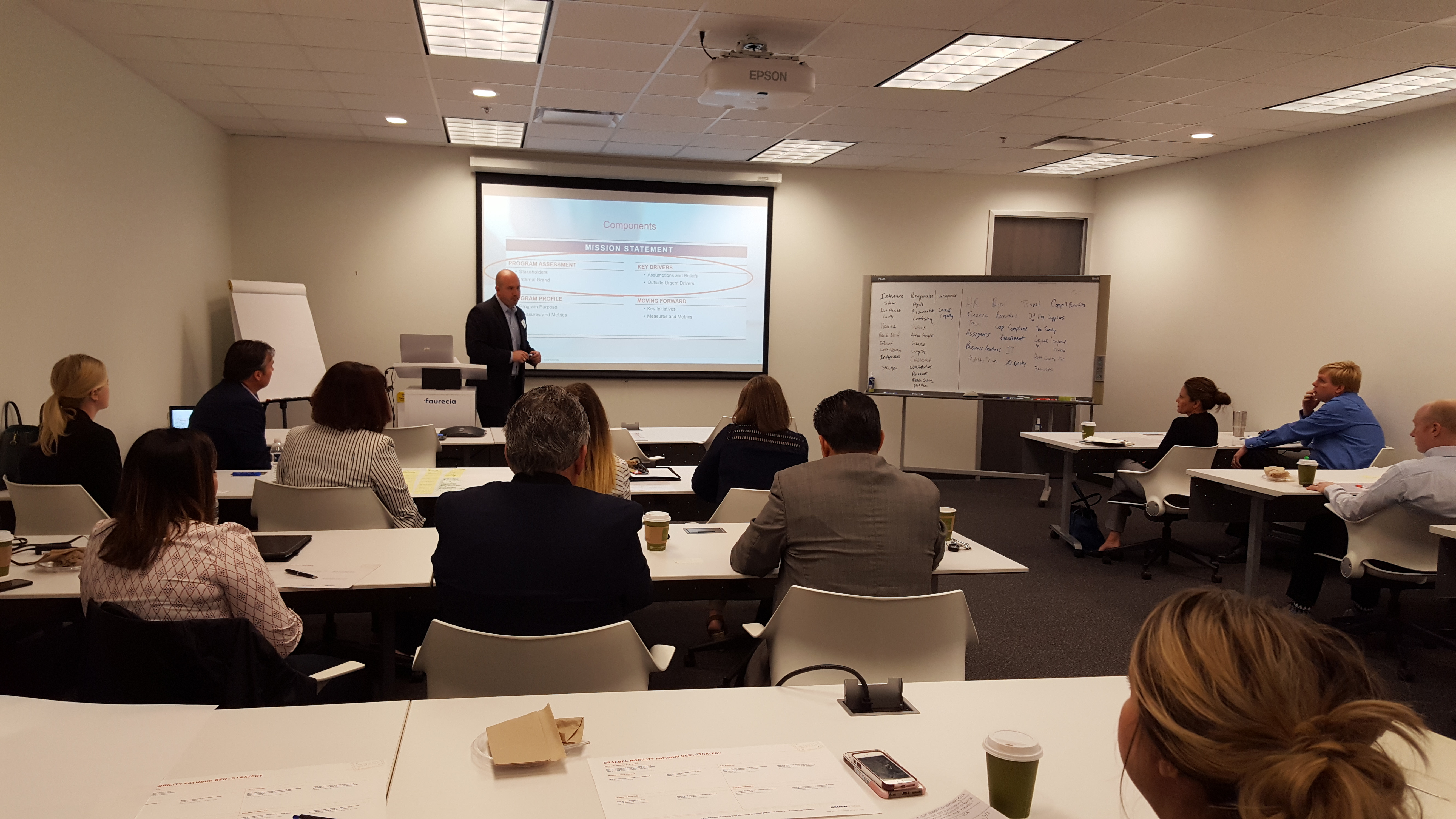 Dan Carraher, Vice President of GRAEBEL, presented on how to create a one page mobility strategy, which included identifying stakeholders, brand, expectations, as well as internal and external factors that are involved. The attendees participated in an interactive discussion to identify stakeholders and the mobility approach.